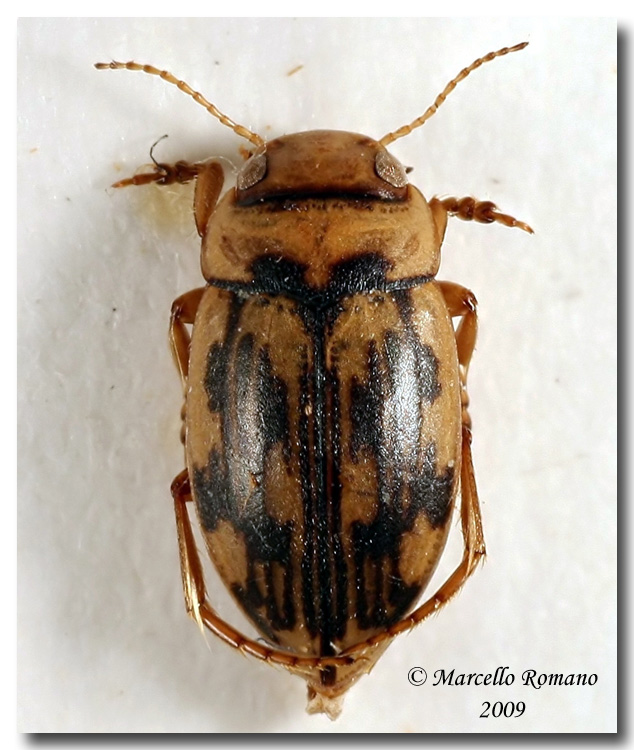 Se lo confrontiamo con N. sansii (esemplare in basso a destra, già presentato qui), possiamo subito notare come il disegno elitrale di N. elegans è prevalentemente composto da un'area nerastra solcata da 4-5 linee longitudinali giallastre che, in generale, si allargano in zone più ampie, spesso confluenti.