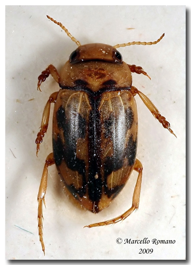 Inserisco un immagine di un esemplare della mia collezione, determinato da S. Rocchi come Potamonectes sansi Aubé (= Nebrioporus sansii Aubé) e proveniente dalla Toscana: S. Godenzo, Fosso di Falterona, VIII 1970.