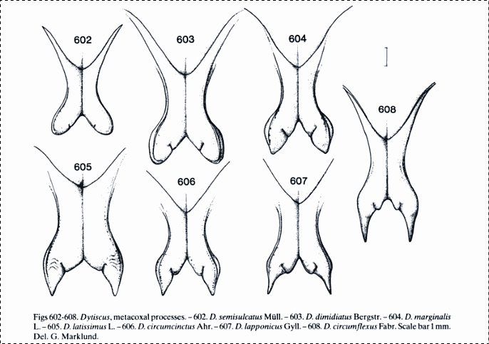 Controlla la forma delle apofisi del tuo esemplare e confrontala con quelle nell'immagine allegata, io ho fatto così con il mio primo (e unico :cry: ) Dytiscus e non ho avuta difficoltà a determinarlo ;)