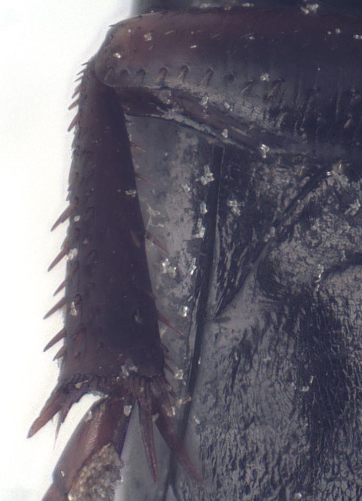 Per la specie non sono sicuro, servirebbero delle immagini migliori del bordo anteriore del pronoto e del lato inferiore dei tarsi posteriori ed anche una foto del lato esterno dei tarsi anteriori con le unghie ben visibili.