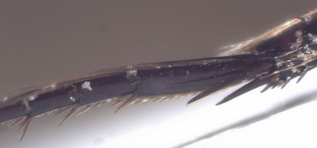 Bene ex Dichonectes (le cui specie sono comprese nell'attuale subg. Gaurodytes), mentre la specie non è il binotatus perchè le serie di pori spiculiferi al lato inferiore del 1° metatarsomero sono due (vedi la seconda indicata dalla freccia nella foto).
