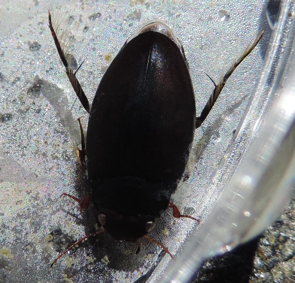 L'ho già postato su FNM, e Giorgio Pezzi (Chalybion) ha suggerito che possa essere un Ilybius, date le dimensioni piuttosto grosse per un qualunque Agabus (misurava 14 mm circa). Al colle del Nivolet, a circa 2600 metri di quota, ho visto su CKMap che è segnalato I. fuliginosus, ma Giorgio suggeriva piuttosto I. ater. Che ne pensate?