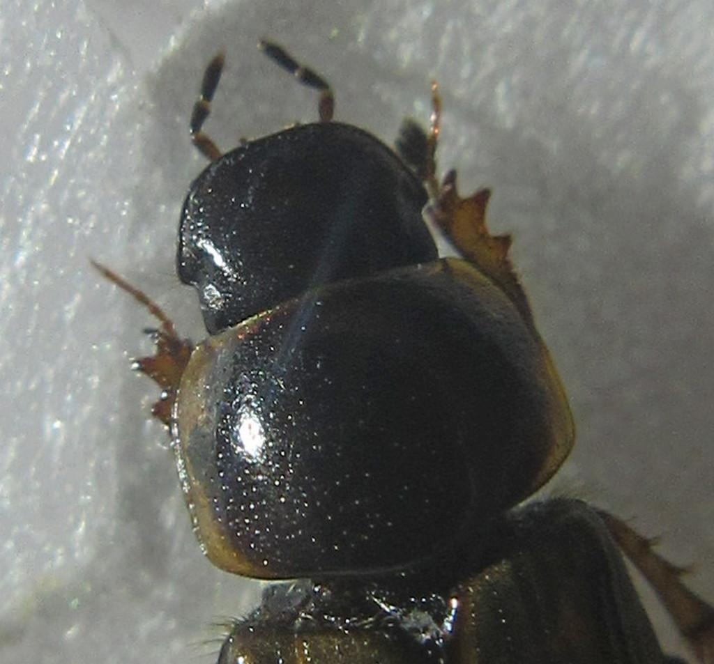 Buonasera a tutti, questo afodino l'ho trovato abbastanza numeroso sotto lo sterco. Sinceramente ho le idee confuse e non riesco ad individuare la specie a cui questo esemplare appartiene. Un aiuto? La zona più chiara all'apice è data dalla mancanza dell'addome.
