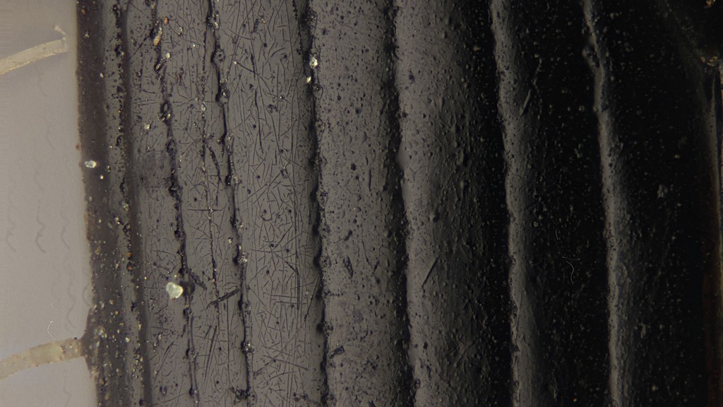 Visto che non ho termini di confronto, ecco una foto delle interstrie (campo inquadrato circa 1x0,6 mm). Spero si capisca, malgrado il grasso.
