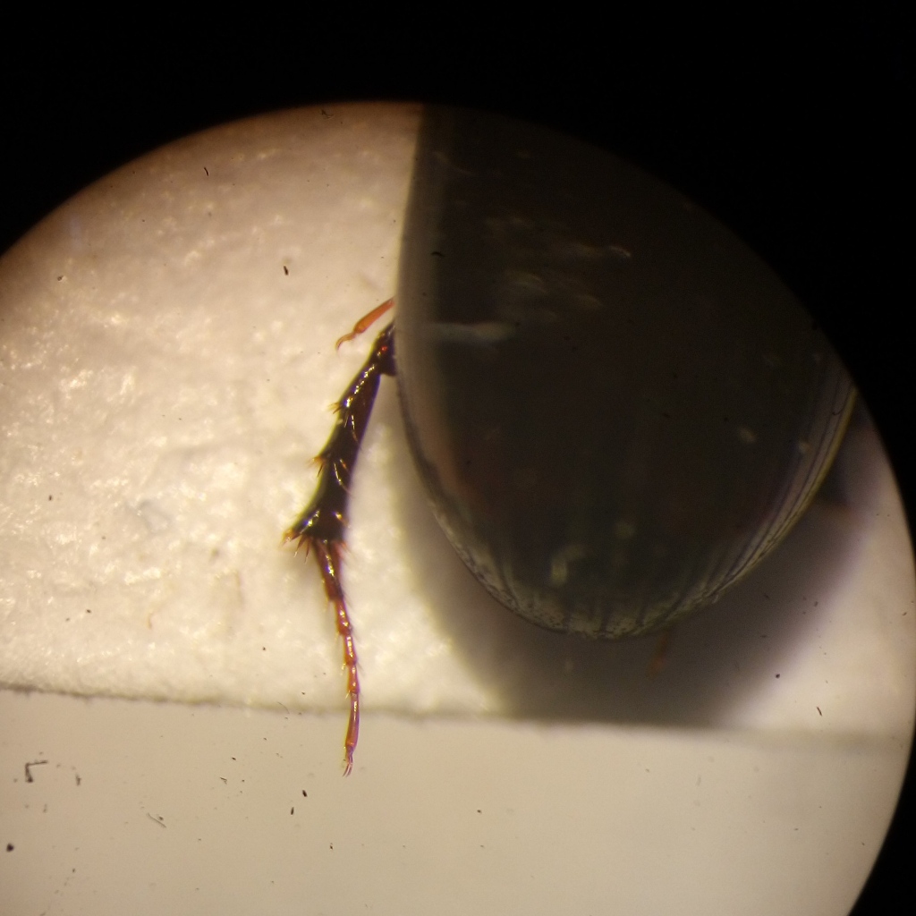 Salve a tutti! Ho provato di prendere buone foto degli tibia e tarsi posteriori, ma non è facile con il telefono... Ho anche provato di identificarli con la chiave di Scaraboidea d'Italia. Non mi sembra Eurodalus paracoelosus, perché il primo articolo degli tarsi è uguale ai speroni apicali, e il tibia non mi sembra dilatato... Dopo, esitato tra Esymus pusillus e Phalacronothus biguttatus... Non successo a essere sicuro se gli interstrie elitrali sono piani o convesse... Grazie per il vostro aiuto Ecco le foto, di diverse individui