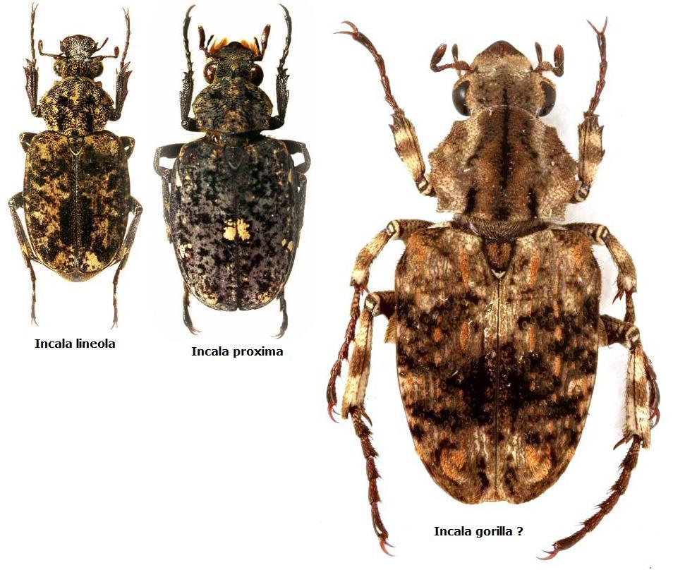 La descrizione mi pare molto breve e vaga, però coincide abbastanza. Ignora alcune caratteristiche che a me sembravano salienti (come i due rilievi nella parte apicale delle elitre) e cita il primo articolo dei tarsi posteriori che dovrebbe essere lunghissimo. Non lo è, ma in nota si dice che probabilmente si tratta di un carattere legato al sesso. In definitiva: potrebbe essere gorilla, ma sarei più contento se uno specialista del gruppo provasse a darci un'occhiata (tanto, quasi tutti i caratteri citati nella descrizione si vedono nella foto). In ogni caso, come sempre, l'esemplare è a disposizione di chi si sentisse di determinarlo.