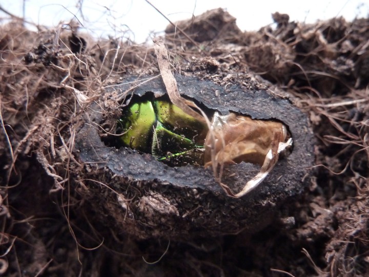 Oggi sono stato a controllare un terrario(piuttosto improvvisato) in cui inserii 3 larve di cetonidi di grosse dimensioni, provenienti da Desio, regalatemi da un amico in maggio. Le prelevò insieme a delle Cetonia aurata pisana nella sua compostiera, in giardino.