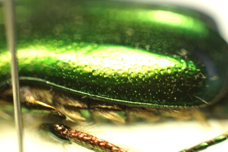 mi è capitata questa presunta cetonia aurata pisana presa in Corsica questo luglio… volevo mostrarla perché non ha neanche una punteggiatura bianca sulle elitre, salvo che un piccolissimo puntino bianco sull’elitra destra…