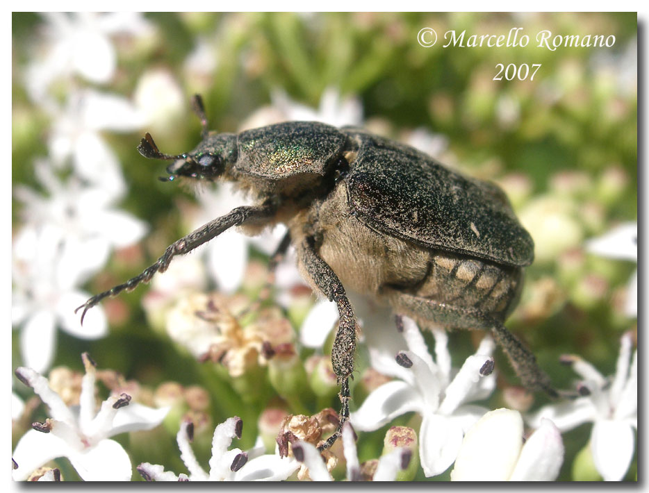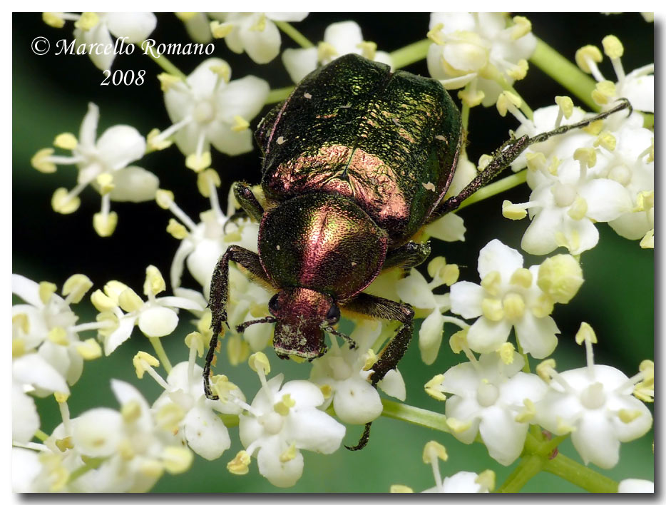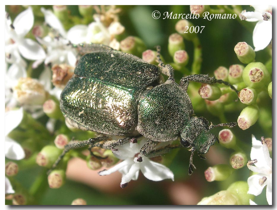 Io l'ho trovato in buona parte d'Italia, balcani ed anche altrove. E' particolarmente comune in faggeta, dove di solito gli adulti si concentrano sulle infiorescenze di sambuco, ma anche di rosa selvatica ed in misura minore su altri fiori. Nelle faggete laziali è uno dei coleotteri più frequenti. Nei boschi a quote più basse è meno frequente ma c'è comunque. L'ho trovato fino a breve distanza dal mare in ambiente di macchia mediterranea (versante marittimo dei rilievi tolfetani). In queste ultime situazioni sembra decisamente più raro, e non l'ho mai trovato sui fiori, ma solo in trappole con vino o frutta, sugli alberi. Ogni tanto ne vedo qualcuno anche a Serrone, in paese, sui ligustri del viale di casa mia (la fioritura dei ligustri attira di tutto: cetonini, Trichius, Gnorimus, cerambicidi vari). Non mando altre foto, tanto ci ha già pensato Marcello a saturare il mercato!