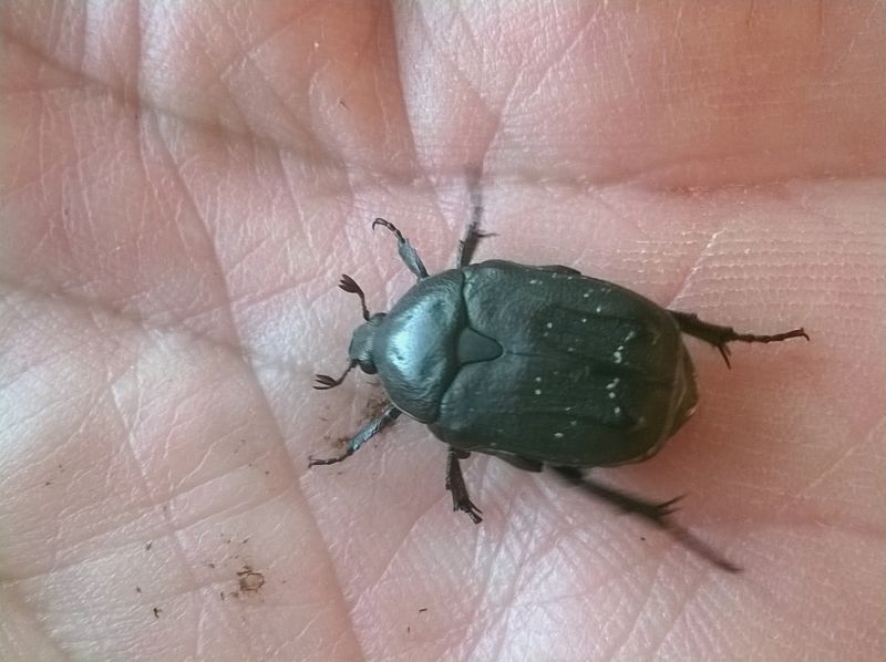 Ciao a tutti.Netocia morio.A volte hanno una sfumatura cromatica leggermente marronata o verdastra,diversa dal grosso degli esemplari.La forma generale e le tacche sulle elitre sono della morio. Se i cetonini li guardi anche sul lato ventrale dalla apofisi si riconoscono meglio. |