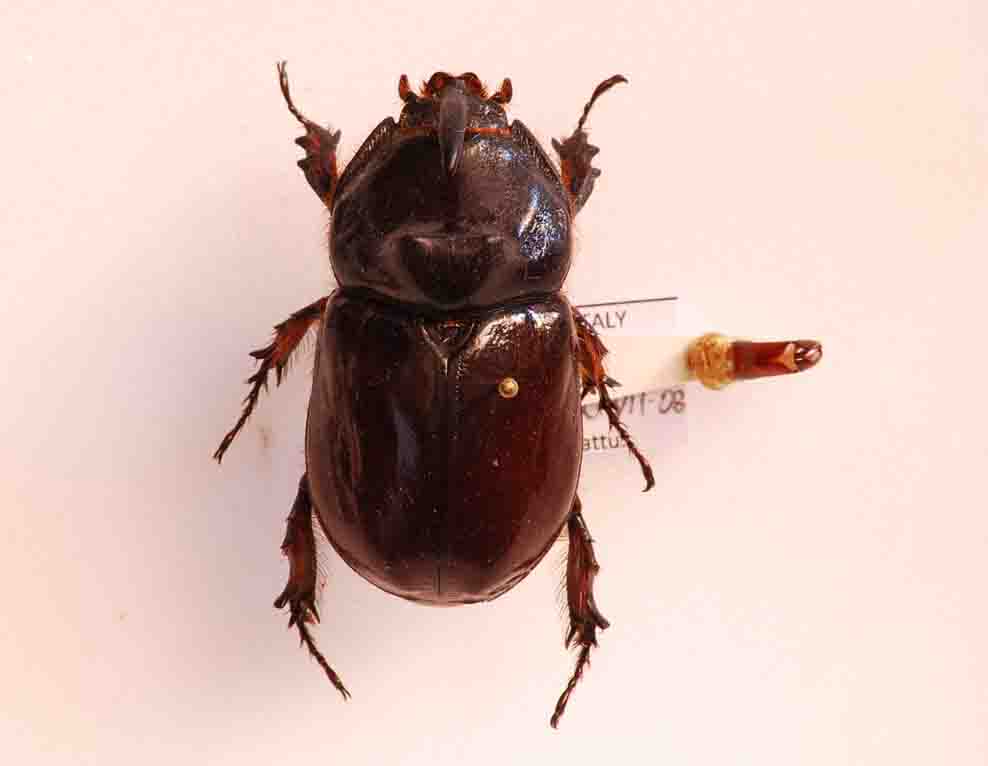 Oryctes nasicornis gripus (maschio). Monti dei Sette Fratelli, 20 luglio 2008
