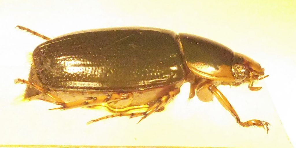 Grazie alle belle chiavi di L. Joly & H. E. Escalona G., 2010 sui Dyscinetus (già Chalepides) del Venezuela, ho potuto identificare questo particolare Dynastino Cyclocephalino maschio (mm 21) che alla luce artificiale mista mostra riflessi verdastri da cui (oltre all'habitus) l'epiteto specifico. Le altre foto sono a luce diurna e l'insetto appare quasi nero sericeo. :hi: