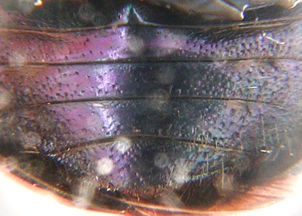 Pronoto ed elitre sono nere con riflessi azzurri sui bordi.