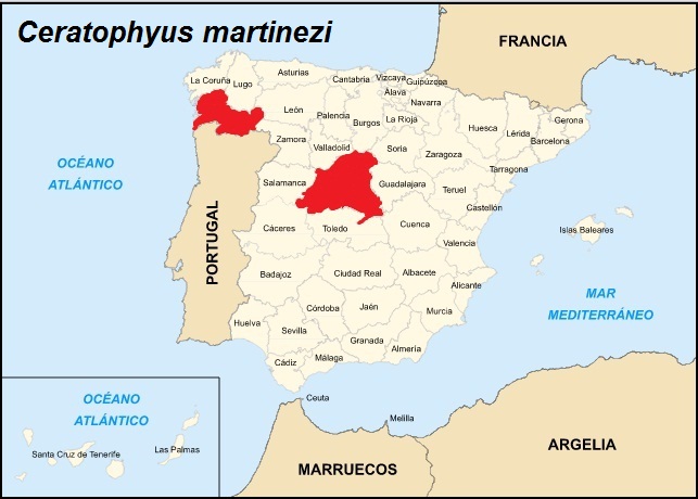 C. martinezi is not present only in central Spain, it occurs also in northeastern part of Iberian peninsula. It's known from provinces of Pontevedra, Orense, Segovia, Madrid and Ávila.