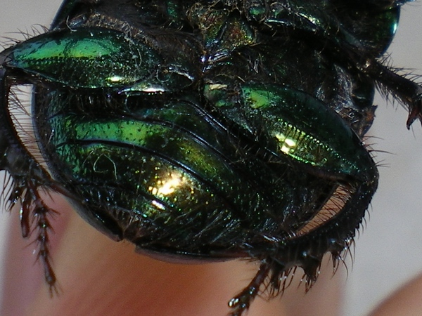 Molto caratteristico il suo aspetto dorsale, che si presenta per l'appunto sericeo :) La zona ventrale è invece un tripudio di colori metallici con una preponderanza del verde (che purtroppo non ho pensato di fotografare :to: ).