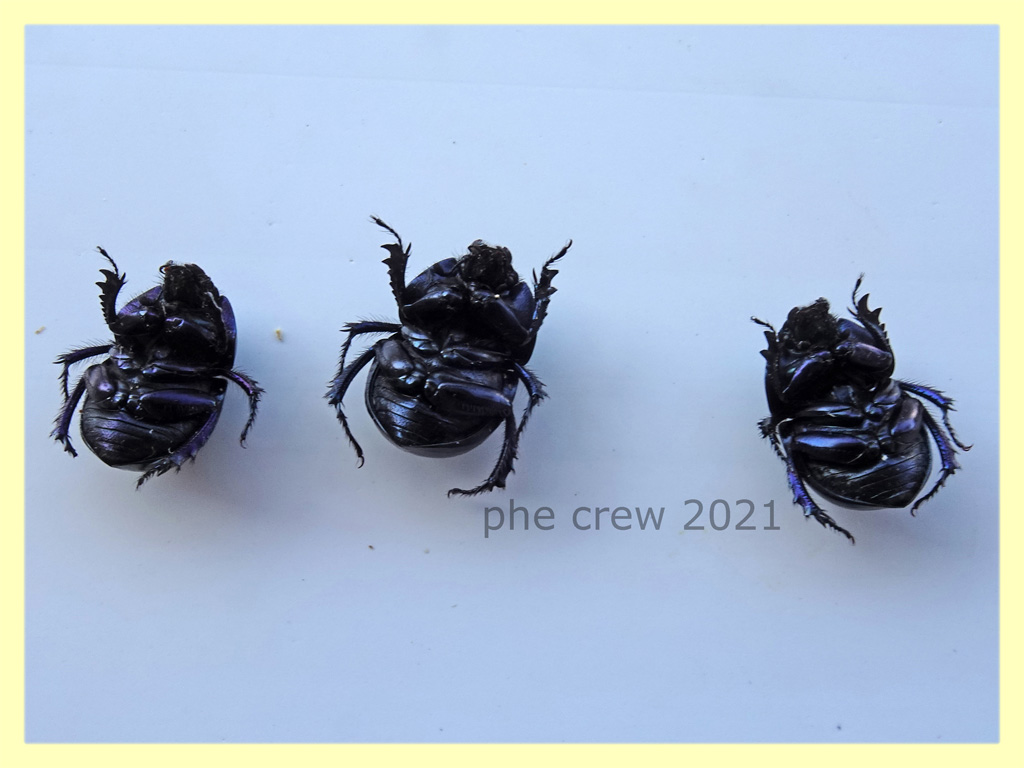 Ciao a tutti.La differenza fra i due sessi in questa specie non è fra le più evidenti.I maschi hanno sul lato superiore della tibia anteriore vicino all'attaccatura di tarsi un altro dentino oltre all'ultimo esterno più grande.Sul lato inferiore fra il secondo e terzo dente hanno il famoso "calletto" che lo contraddistingue dal brullei.Nelle femmine sul lato superiore delle tibie anteriori l'ultimo dente declina fino all'attaccatura dei tarsi senza ulteriore dentino interno.Dalle foto che hai fatto mi sembra di vedere almeno un maschio ma controlla gli esemplari.Tieni presente che a volte questi caratteri possono essere soggetti a usura su esemplari vecchi