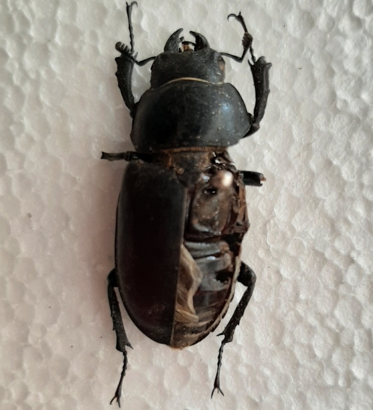Circa due settimane fa mi sono rotto un osso del piede, ma per fortuna non è ancora periodo di caccia :) . Saltello comunque per il giardino e in un boschetto vicino a casa in cerca di qualche insetto. Oggi ho trovato questo lucanide morto e piuttosto malconcio. Direi dorcus parallelepipedus, si può confermare?