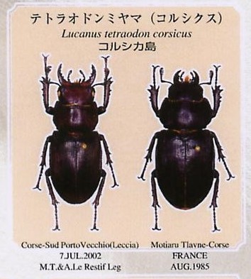 Per quanto riguarda la Corsica il recente volume di Jiroux (2020), in cui sono trattati anche i lucanidi, segnala la presenza di L. tetraodon serraticornis ma non di cervus.