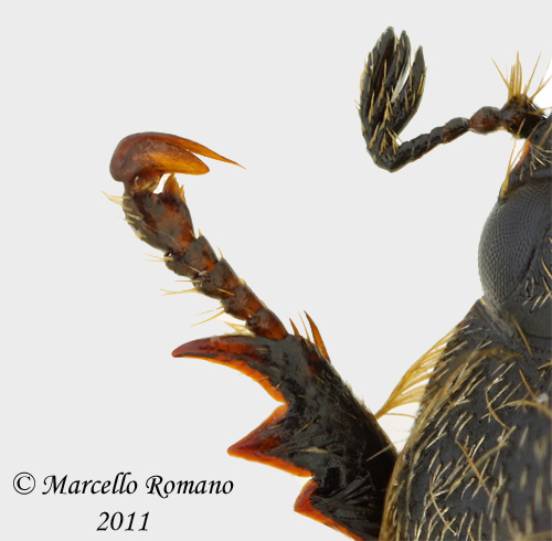 Aggiungo una foto di dettaglio dei tarsi anteriori del maschio, il quale, a quanto pare, non si taglia mai le unghie :o :D