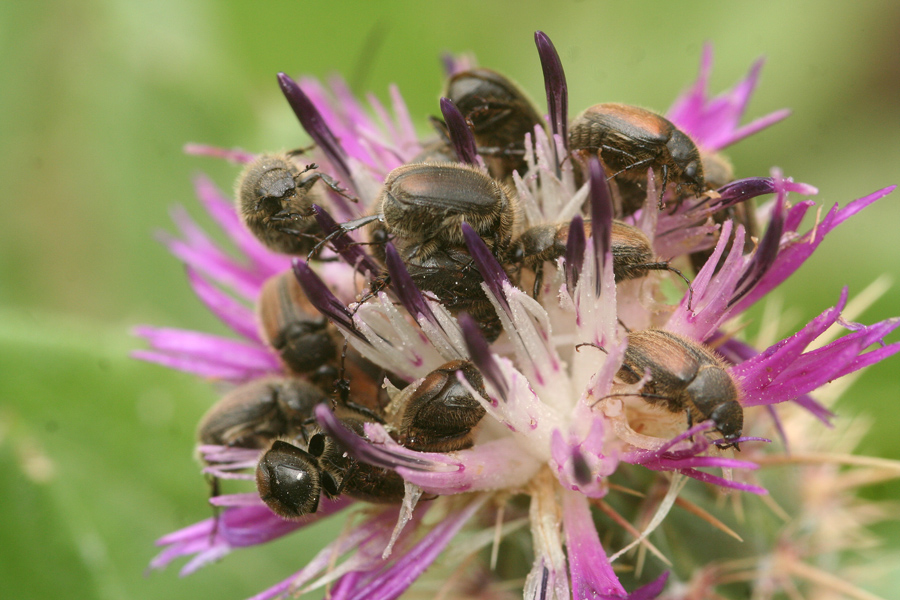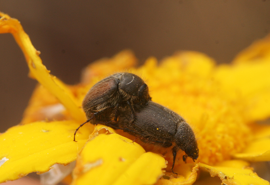 Malgrado la giornata pesante d'incipiente pioggia ho osservato diversi primaveili entomi. La specie più comune era il piccolo scarabeide Paratriodonta cinctipennis: