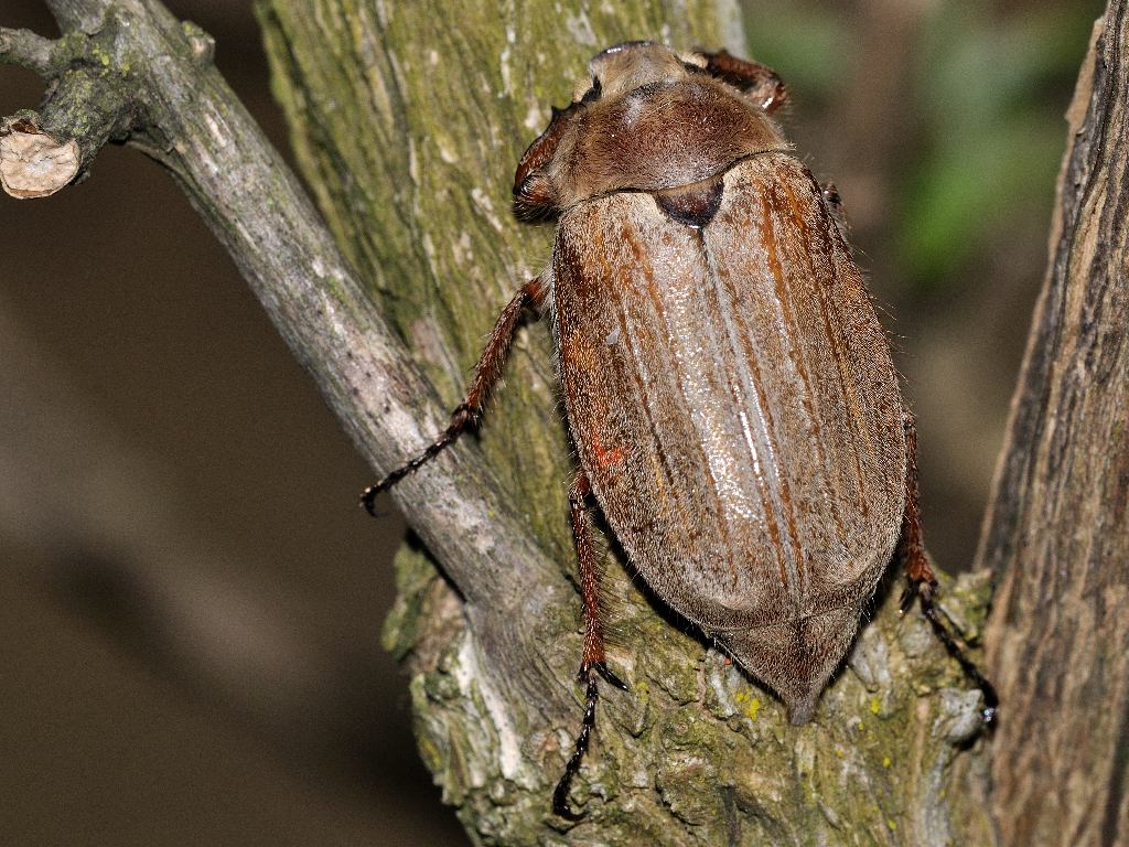 Guardando la foto secondo me la M.hippocastani è da scludere non riesco a vedere bene quella strozzatura apicale con un allargamento, che c'è nella parte terminale del pigidio,e dal quel che si vede nel 3 articolo antennale non mi sembra di vedere la sporgenza presente in maniera marcata nella M.pectoralis,opterei ( con beneficio del dubbio) per Melolontha melolontha Linnaeus 1758,ma attendiamo esperti  Ora aspetto  da quelli mooolto più esperti di me ,perlomeno ci ho provato...