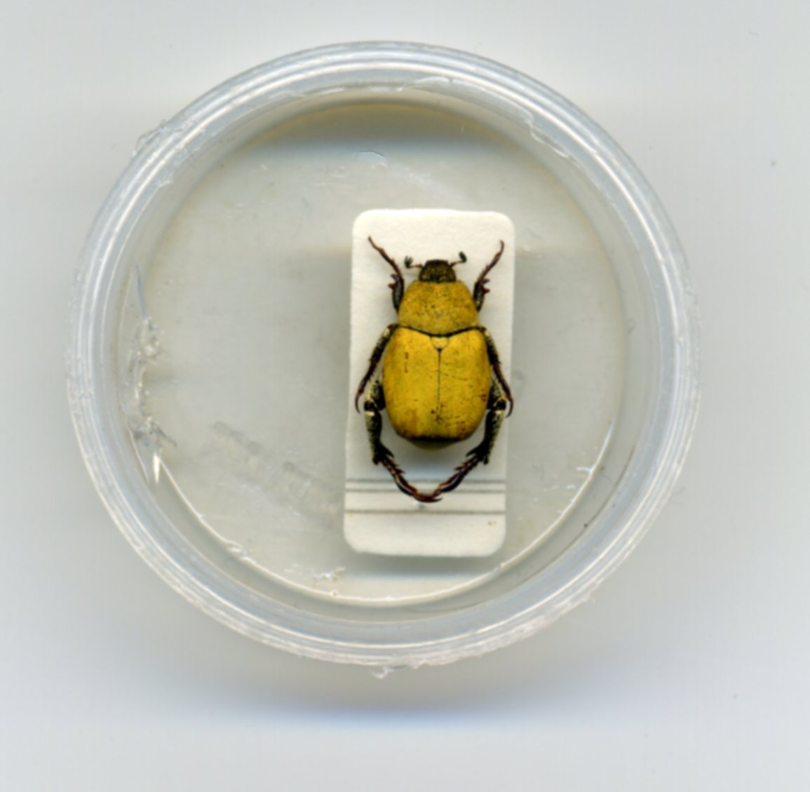 Ciao Daniele e ancora benvenuto sul forum Immagino che tu abbia fatto la foto col telefonino o comunque con un apparecchio fotografico poco adatto per la macro e con scarsa illuminazione. La foto, come tu stesso riconosci, è totalmente illeggibile in questo modo. Mi permetto perciò di darti un suggerimento che estendo a tutti coloro i quali sono sprovvisti di una fotocamera adatta, ma posseggono, come ormai quasi tutti, uno scanner. Con questo strumento si possono ottenere immagini certamente modeste, ma enormemente più utilizzabili per tentare una prima diagnosi dell'esemplare proposto, rispetto alle foto ottenute con un telefonino. Per realizzarle, devi prendere la tua Hoplia sp. e passarla, letteralmente, allo scanner, scegliendo una risoluzione alta (almeno 600 dpi). L'immagine ottenuta poi può essere leggermente migliorata (messa a fuoco, contrasto etc.), se si possiede, con un qualsiasi programma di foto-ritocco. Questo il risultato appena ottenuto passando allo scanner una Hoplia africana della mia raccolta (dimensioni 12 mm). Niente di particolare, ripeto, ma comunque accettabile. L'unica accortezza che, ovviamente, devi avere, per evitare di schiacciare il tuo esemplare quando richiudi il coperchio dello scanner, è quello di proteggerlo, per esempio utilizzando, come ho fatto io, un tappo di plastica o comunque una scatoletta con un minimo di spessore che consenta di contenere l'insetto, poggiato sul dorso sullo scanner. Il mio esemplare era protetto così: