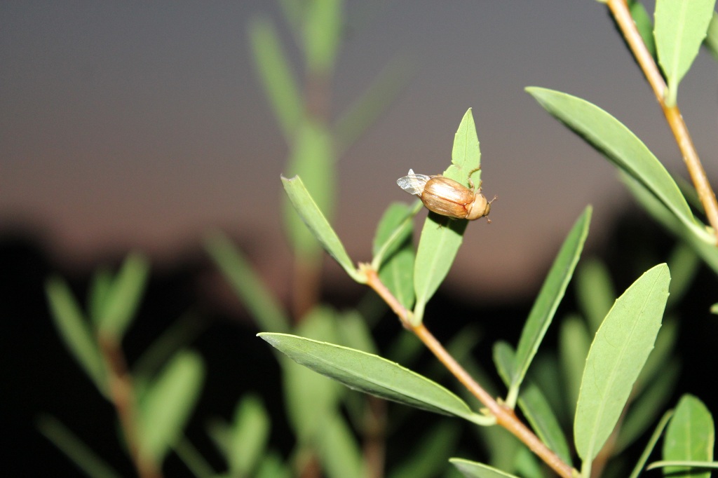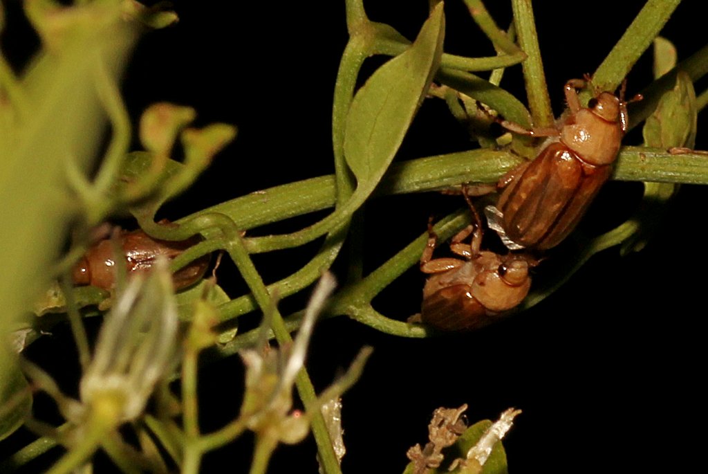 Amadotrogus grassii (Mainardi, 1902)Lazio, Roma, Pineta di Ostia-Castelfusano, 18.VIII.2012, M. Gigli legit Finalmente li ho trovati! Era un po' che speravo di trovare questo endemismo tosco-lazial-campano, ma non ero mai riuscito ad andare nel posto giusto al momento giusto. Oggi pomeriggio sono uscito verso le 18.00 per andare a ritirare un paio di trappole per necrofori che avevo messo tempo fa a Maccarese. Alle 18.40 ero sul posto, alle 19.00 avevo già visto che le due trappole non c'erano più (una scoperchiata e svuotata, l'altra scomparsa), e dopo aver preso un paio di mutille per Marcello, visto che la strada per tornare verso Roma era tutta una fila si macchine di gente che rientrava dal mare, ho pensato di deviare e andare a vedere nella pineta di Ostia se per caso girava questa benedetta bestia. Arrivo nella pineta poco dopo le 19.30, proprio mentre la folla stava andandosene. Stando a quanto avevo letto e mi avevano detto, questa bestia svolazza intorno alle chiome degli alberi, quindi mi dirigo verso una parte di pineta devastata dall'incendio di alcuni anni fa, in cui pini e piante della macchia mediterranea sono in fase di ricrescita e per la maggior parte superano di poco i 2 metri, o anche meno. All'inizio non si vede in giro niente, a parte un'altra mutilla e qualche Tentyria e Scaurus. Nel frattempo tramonta il sole. Poco minuti dopo noto un piccolo Melolonthino svolazzare sulla cima di un pinetto, troppo rapido per fare qualsiasi cosa. Comincio a guardare le cime dei vari arbusti ed alberelli, e quasi ovunque c'è movimento! Si vedono quasi solo quando sono in volo, ma ce ne sono anche posati tra il fogliame, anche se quasi invisibili. Dopo qualche tentativo andato a vuoto, finalmente riesco a fare qualche scatto un po' più decente! Fotografarli è quasi impossibile, perché non stanno fermi un attimo. Poi, ovviamente, mi metto a prenderne qualcuno. Prima inizio a spostarmi da una pianta all'altra, ma è più il tempo che perdo che altro, la maggior parte è irraggiungibile ) col retino corto e col manico che si svita) e la luce cala sempre più. Allora mi fermo di fronte ad una pianta promettente, quella della foto con quei tre, e aspetto. Ogni pochi secondi ne arriva uno. Forse è rimasto l'odore della femmina. Tutto dura 10-15 minuti, tra gli attacchi volanti dei pipistrelli e dei succiacapre, poi, poco prima che faccia buio del tutto, non se ne vede più uno. Devono essere tutti sulle piante. tanto vale che me ne vada a cena pure io.