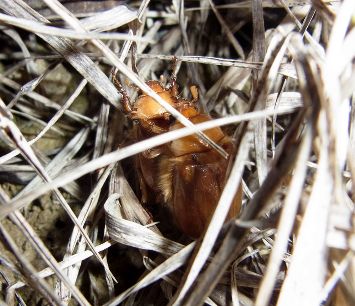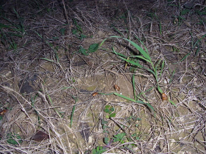 Armato di buona volontà, fatto il punto della situazione (ora o mai più), avendo già raccolto i maschi in passato, parto alla ricerca della femmina. Impresa che nel primo momento mi è sembrata abbastanza ardua, dato che tutti gli esemplari trovati da me fino a quel momento erano maschi, attirati dalle luci. "Temporeggio" nel primo posto che mi sembrava idoneo e non li trovo, neppure annegati nelle pozzanghere. Ragiono sul fatto che probabilmente vi è una certa relazione tra questi insetti e i centri abitati, tanto che di loro lì, dove di notte è completamente buio, non ve ne è la minima traccia. Mi avvicino ai primi centri abitati, abbastanza da avere a disposizione i campi coltivati ai margini della strada e i lampioni quasi sopra di essi, ma non troppo, in modo da evitare le zone completamente cementificate, difficilmente raggiungibili delle femmine (che non volano se non erro). La zona industriale nei pressi di un ristorante mi è sembrato il posto ideale.