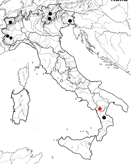 Questa, secondo Roessner & Krell (2008) (che hanno rivisto il complesso di specie solstitiale/ochraceum/fallenii/dalmatinum), è la corologia attuale della specie in Italia (in rosso la stazione del Mt. Pollino).