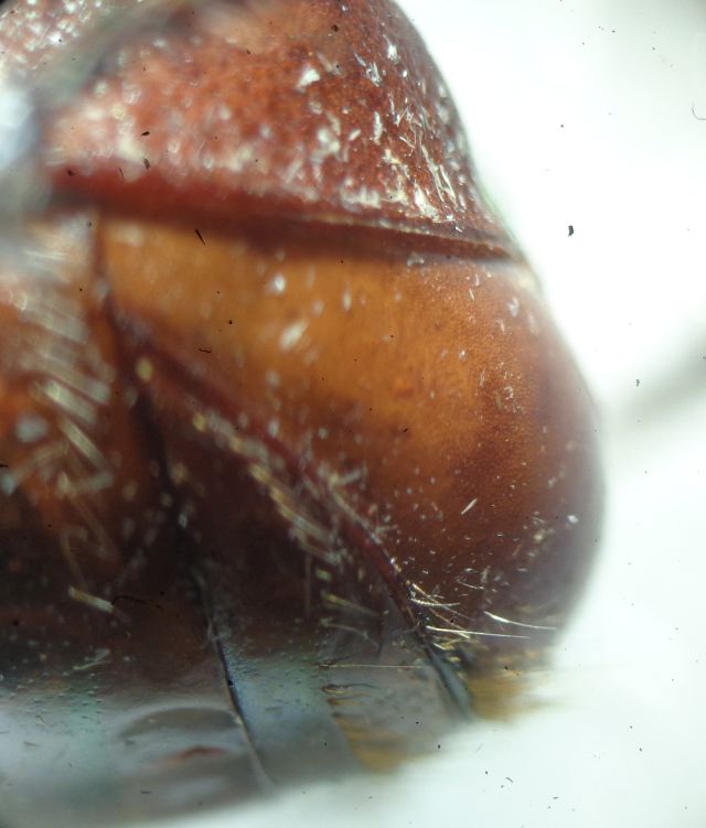 - pigidio bombato in vista laterale (se il pigidio è molto coperto dalle elitre si apprezza meno, come qui), glabrescente;