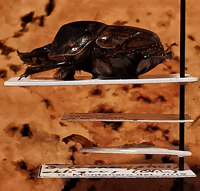 La combinazione di un pronoto "a delta" e di una testa ogivale/triangolare e totalmente inerme è una morfologia maschile comparsa probabilmente più volte negli Onthophagus. Vi sono numerose specie appartenenti a sottogeneri diversi (Strandius, Afrostrandius, Phanaeomorphus, Pseudophanaeomorphus, Gonocyphus solo per citarne alcuni) in cui i maschi hanno queste caratteristiche. Quali siano i vantaggi e l'uso di questa morfologia in ambito di competizione maschile mi piacerebbe proprio saperlo. Mi pare molto improbabile che la forma "a delta" del pronoto serva per combattimenti corpo a corpo, per i quali normalmente vengono usate corna di tutti i tipi. Un'ipotesi affascinante sarebbe che possa servire sì come strumento di competizione intrasessuale, ma non per scontri fisici veri e propri bensì per "mostrare quanto si è grandi" ai rivali e cacciarli senza spreco di energie. Tra l'altro, le superfici piane oblique che tagliano il pronoto dandogli la forma a delta sono spesso molto lucide, e vai a sapere che non creino qualche gioco di luce per accentuare le dimensioni di chi le possiede, facendolo risultare più minaccioso. La testa, senza più motivo d'avere corna, potrebbe servire da ulteriore superficie riflettente. Tutto ciò potrebbe pure funzionare bene come display sessuale. Mi pareva che qualcosa di simile fosse stato ipotizzato per certi Phanaeus, ma non ricordo dove l'ho letto/sentito... Ad ogni modo, il sottogenere Gonocyphus è uno dei gruppi con questa morfologia. E' piuttosto inconfondibile sia per i caratteri esterni che dei genitali e conta due sole specie note, entrambe afrotropicali: O. (G.) shimba Cambefort, 1980, noto di Kenya e Tanzania ma localizzato e legato probabilmente all'elefante, e O. (G.) obliquus (Olivier, 1789), noto dal Senegal al Camerun al Sudan. O. obliquus pare gradire soprattutto escrementi di zebù ed è comune in savane secche e perfino aree disboscate e relativamente degradate, cosa che probabilmente ne spiega almeno in parte l'ampia diffusione e la relativa frequenza. E' un Onthophagus grossetto: in collezione ho qualche esemplare che raggiunge i 16-17mm.