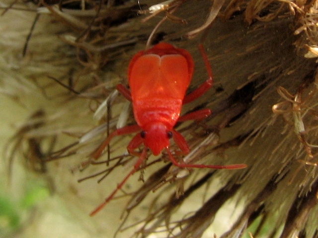 Era l'unico di un bel rosso corallo in una tribù di grandi e piccoli rigorosamente rossi e neri. Tra poco riacquisterà la protezione dei suoi colori normali. Quest'anno ce ne sono davvero tanti sui cardi e sui frutti dell'ibisco. Ciao nicoletta |