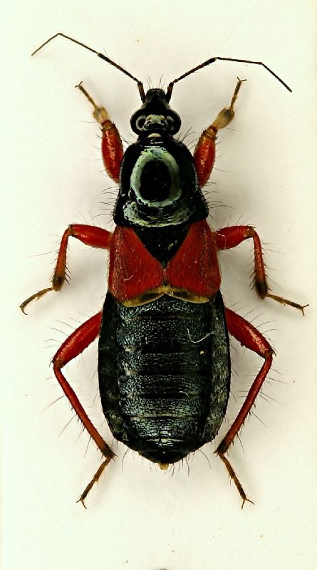 si tratta di Prostemma sp. - Nabidae, credo con buona probabilità Prostemma (Prostemma) guttula (Fabricius 1787), pronoto tutto nero o con riflessi bluastri e femori mediani e posteriori tutti rossi :)