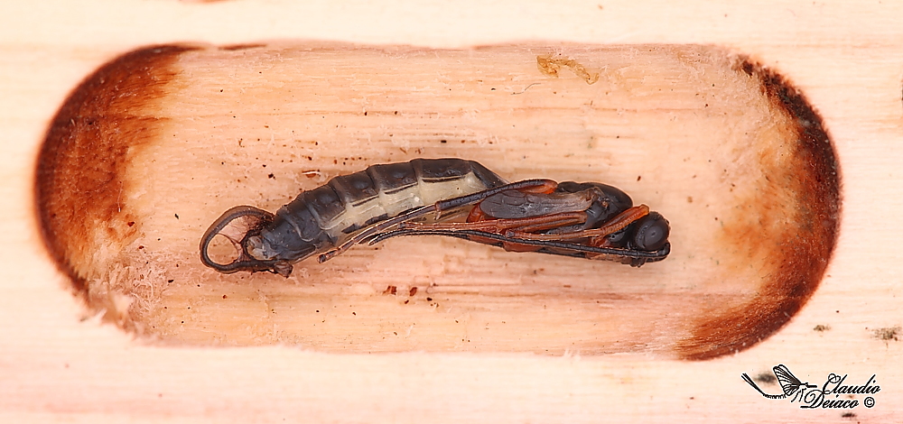 Ho trovato la larva di questo Ichneumonidae in una caletta di cerambice, che appena portata a dimora in casa si è mutata.