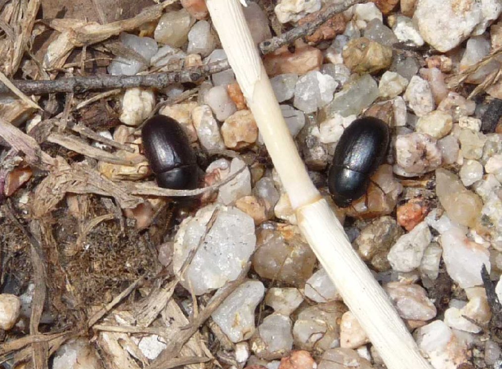 Ho trovato un certo numero di questi piccoli coleotteri delle dimensioni scarse di un Aphodius; anche sei o sette sotto la stessa pietra, adagiata su un substrato attualmente asciutto di sabbia e giunchi.
