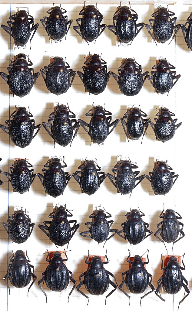 E qui una foto veloce per mostrare l'enorme variabilità di questa specie. Gli esemplari col cartellino rosso non sono tipi! Nei primi anni della mia collezione scrivevo i cartellini di località degli esemplari extra-italiani su cartoncino di colore diverso a seconda del continente. Per l'Africa usavo un cartoncino marrone, che però col tempo si è scolorito, diventando rosso. Per cui tutti gli esemplari raccolti nel viaggio del 1980 sembrano dei tipi!