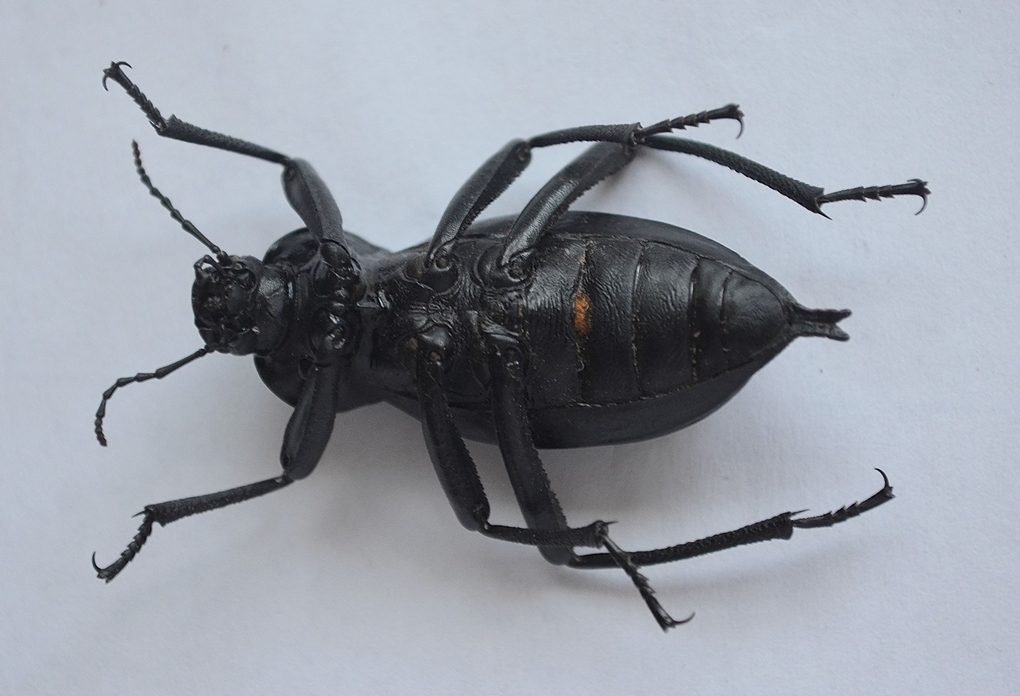 Questo Blaps è ancora da preparare, ma non ho potuto resistere a metterlo in posa per un aiutino nell'identificazione, questa codina così lunga e addirittura un po' biforcuta fa accrescere la mia curiosità. In campo la scambiai direttamente per una Blaps gigas (Linnaeus, 1767), ma quelle che vedo su internet la maggioranza hanno 'l'apice' più fuso, è un carattere differenziatore o semplicemente una normale variabilità.