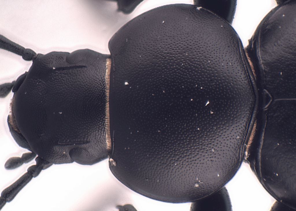 Si identifica facilmente per la forma della base del pronoto: fortemente sporgente all'indietro nella zona mediana.
