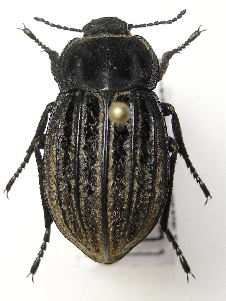 Alphasida becerrae, maschio 15 mm femina 16 mm, picola especie muy acortada y con pilosidad dorada. Se puede encontrar con dos costillas o con tres costillas en cada élitro.