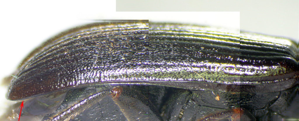 Allora, ho fatto la foto dell'intero bordo dell'elitra al microscopio. Per ottenere l'intero profilo, ho fatto tre inquadrature sequenziali, ognuno in scatto multiplo e successivo stacking, e poi ho ricomposto l'intera elitra. C'è qualche "sbavatura" di fusione files, ma tutto sommato la immaginavo più difficile.