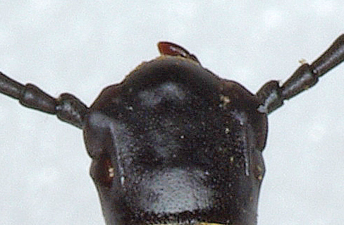 Allora: 1. il bordo anteriore del clipeo è simmetrico, 2. i punti delle strie elitrali divengono meno visibili nel terzo apicale, nell'ultimo quarto apicale scompaiono del tutto. 3. L'angolo omerale è l'angolo basale delle elitre? Se è così, allego un ingrandimento, altrimenti faccio un'altra foto.