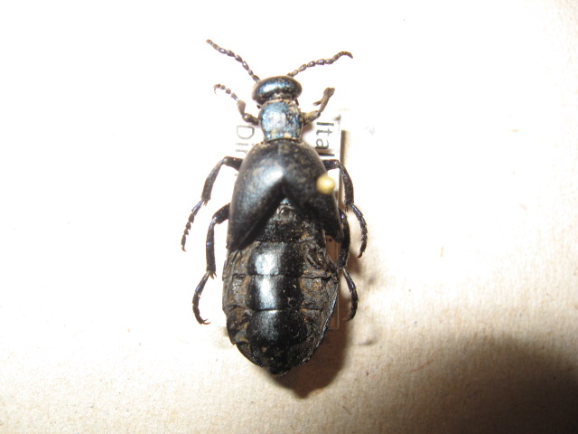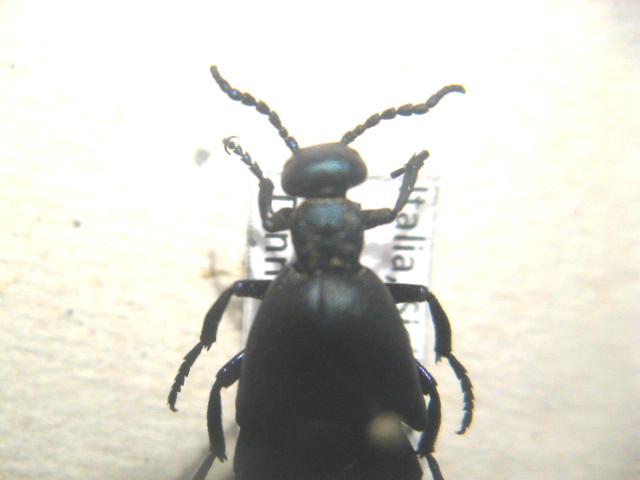 Purtroppo le varie specie del sottogenere Meloe (di cui 3 presenti in Sicilia) differiscono solo per pochi particolari. M. violaceus lo riconosco per la particolare forma della base del protorace, ma da questa foto non si capisce bene come sia(almeno, io non lo capisco bene). Sembrerebbe più simile a quella di proscarabaeus e aegyptius. Si potrebbe avere una foto più dettagliata, magari un particolare di protorace e dintorni?