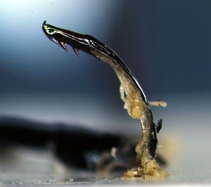 In secondo luogo volevo mostrare il risultato della preparazione dell'esemplare ottenuto svuotando l'addome con una siringa e ripompando dentro l'aria.