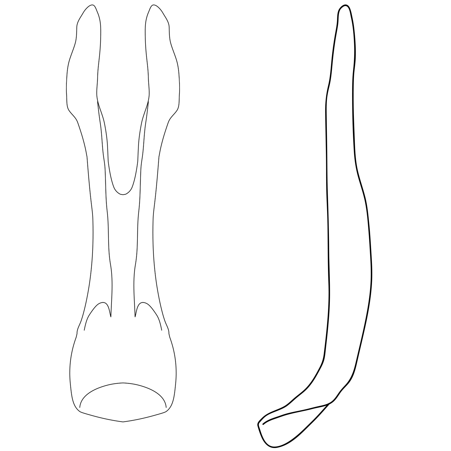 Vi propongo anche i genitali, con i parameri che per un errore di inclusione sono in vista dorsale e non ventrale, e un disegno sempre dei genitali. Non siamo certo ai livelli di Cosmin, ma piano piano... :D .