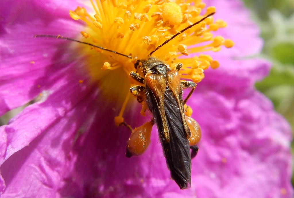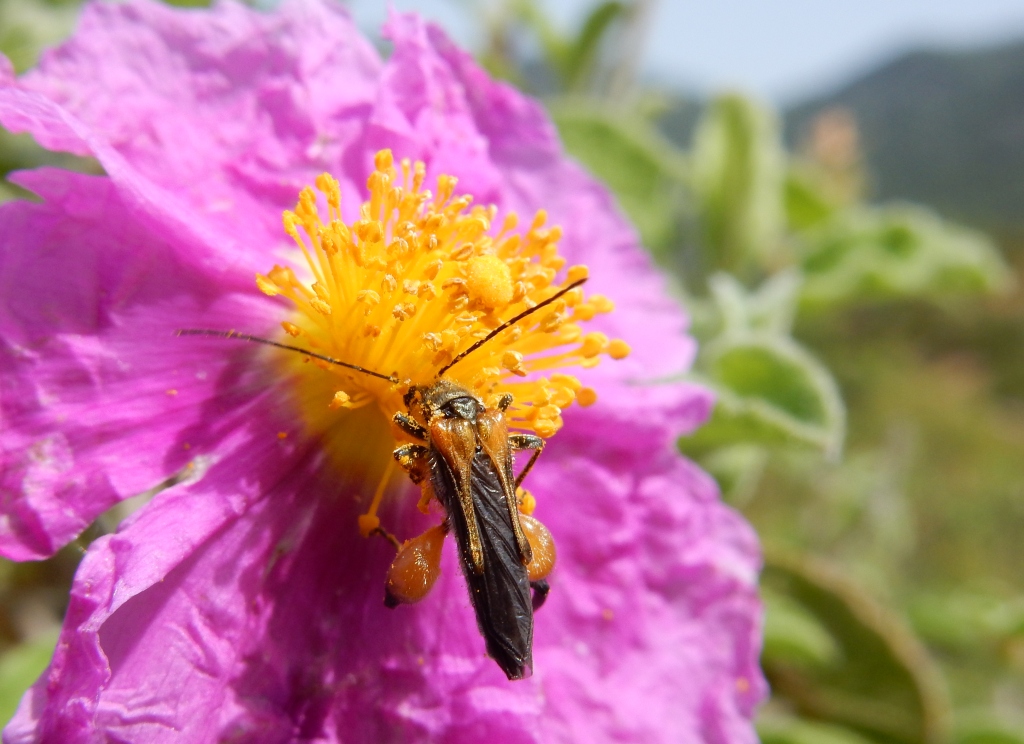 Oedemera brevipennis è una specie endemica di Turchia, di aspetto inconfondibile. È localmente comune sui versanti meridionali del Tauro, in ambienti termofili, l'ho osservata più frequentemente su fiori di cisto. Ecco un maschio incontrato quest'anno "profondamente indaffarato" e l'ambiente di osservazione. |