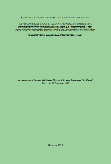 Magrini, Sciaky e & Degiovanni 2025 - REVISIONE DEI TAXA ITALIANI FINORA ATTRIBUITI A PTEROSTICHUS (FERONIDIUS) MELAS (CREUTZER, 1799) CON DESCRIZIONE DI TRE NUOVI TAXA E NOTE SINONIMICHE