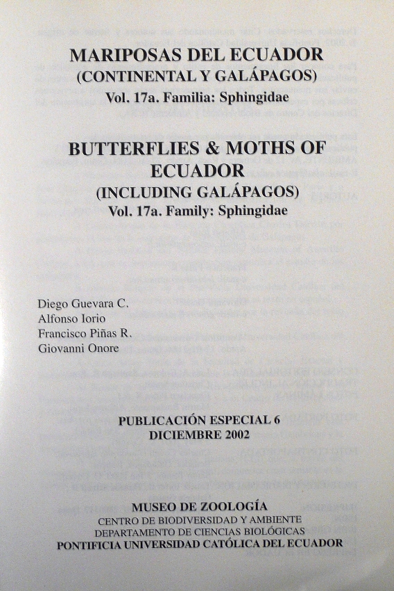 Mariposas del Ecuador (Continental y Galápagos). vol. 17a. Familia Sphingidae. GUEVARA D., IORIO A., PIÑAS RUBIO F., ONORE G.
