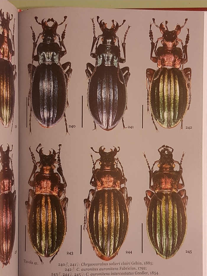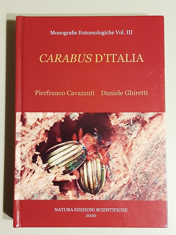 Buongiorno a tutti, spendo due parole per introdurre questo volume che ho appena acquistato da Natura Edizioni Scientifiche, che peraltro è l'unico rivenditore dell'opera, al costo di € 95,00, prezzo senz'altro meritato. Si tratta di "Carabus d'Italia", Monografie Entomologiche-vol.III, autori i ben noti Pierfranco Cavazzuti e Daniele Ghiretti, (edito da Natura Ed. Scient.) la cui conoscenza sui Carabus , a parere mio,credo sia al di là di ogni discussione. L'opera colma un vuoto esistente dopo il volume mitico " Carabidae.I "di Casale, Sturani e Vigna Taglianti risalente al 1982, altra opera assai meritoria ma già i là con gli anni. Il volume è composto da ben 380 pagg., copertina rigida, formato 17x24, quindi non proprio un libricino, contiene 47 tavole fotografiche a colori che raffigurano ben 281 exx. della fauna italiana, noncè 32 tav. di genitalia e 51 cartine di distribuzione, il tutto con ottima risoluzione fotografica e colori vividi e fedeli che ne elevano la qualità.Dal punto di vista sistematico gli autori si rifanno a Deuve et al.(2012), con riferimento all'analisi mitocondriale condotta da Osawa et al. (2002-2003). L'opera è uscita da poco (maggio 2020, nonostante il COVID!)) e l'ho scoperta per puro caso cercando lavori sui carabus italiani recenti. Chiudo con un vivo ringraziamento agli autori per la mole di dati esaurienti e precisi raccolti nell'opera, che diventerà sicuramente un riferimento per molti entomologi e bravo anche lo staff di Natura per la stampa del lavoro. Buona lettura a tutti.