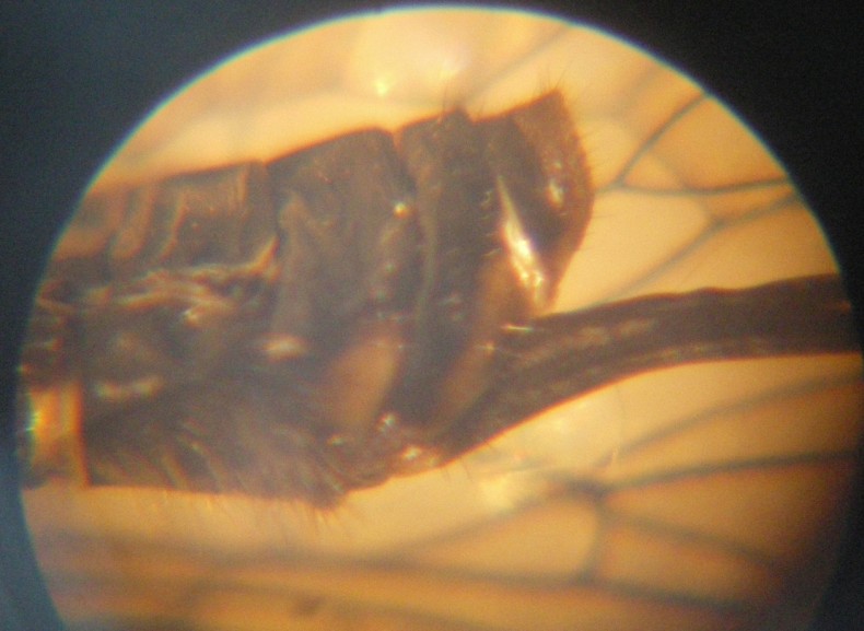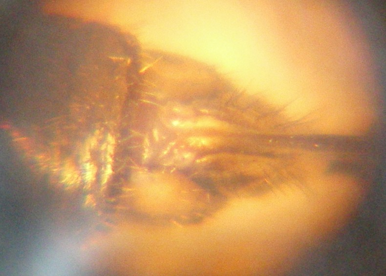 Occorre un buon ingrandimento dell'apice dell'addome in visione laterale e ventrale.