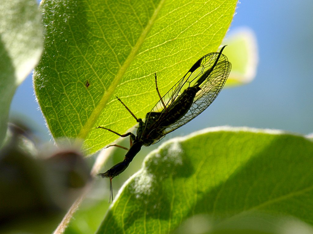 Altro Rafidiottero, su Styrax officinalis, pianta del Mediterraneo orientale che stranamente è molto comune su una piccola serie di rilievi laziali (Monte Soratte, Monti Cornicolani e Tiburtini).